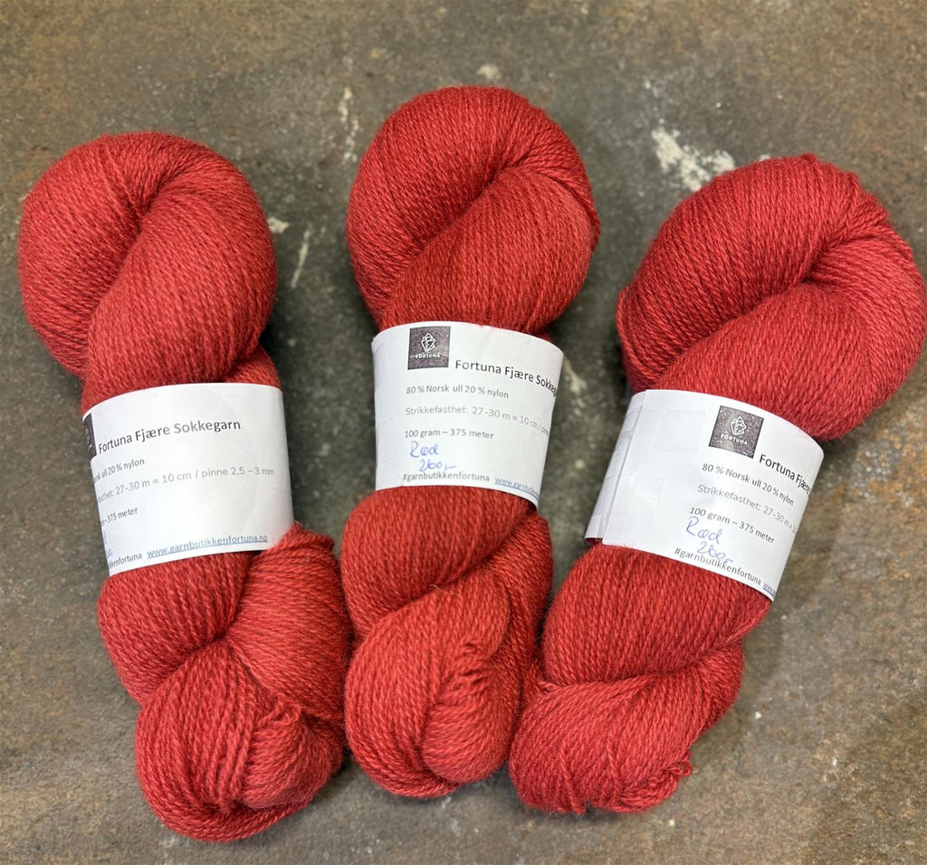 Fortuna Fjære Sokkegarn er håndfarget i Fortunas mikrofargeri i butikken på Løkken Verk.