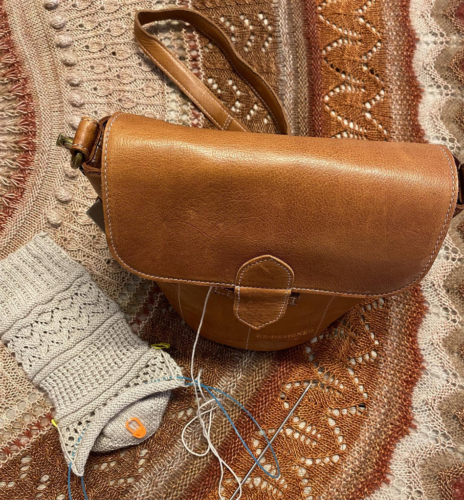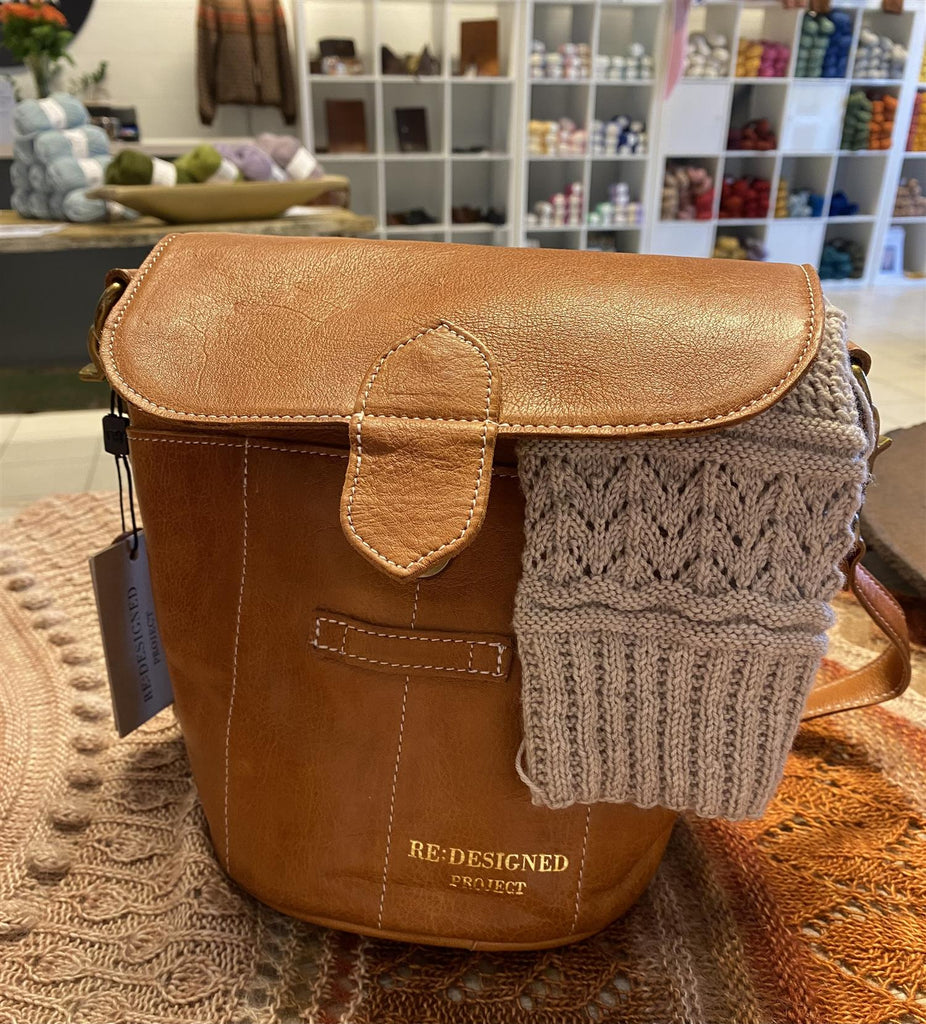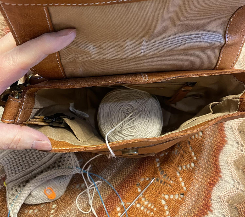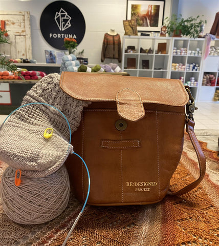 Project 59 is for small knitting projects on the go. It is perfect for the small scarf or sock project and has several pockets for organizing.