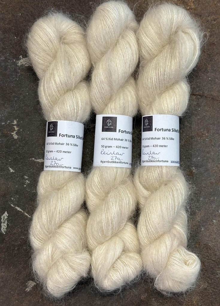 Lekkert garn i mohair og silkeblanding, 64 % Kid Mohair og 36 % Silke.
