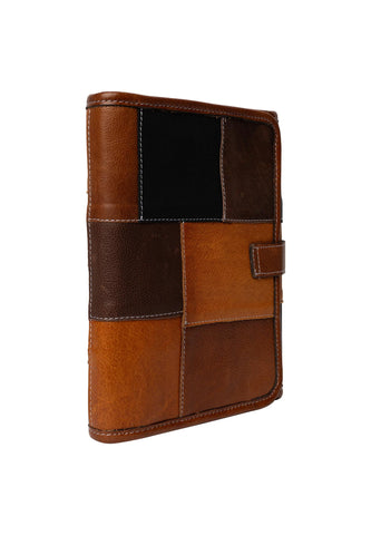 The waste leather is cut into smaller squares and stitched together carefully ensuring a unique and beautiful project bag where no two are the same.