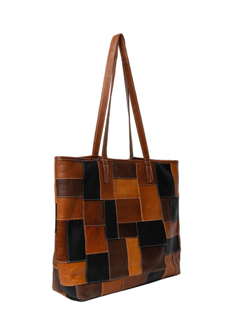 The waste leather is cut into smaller squares and stitched together carefully ensuring a unique and beautiful project bag where no two are the same.
