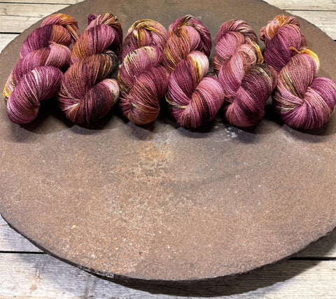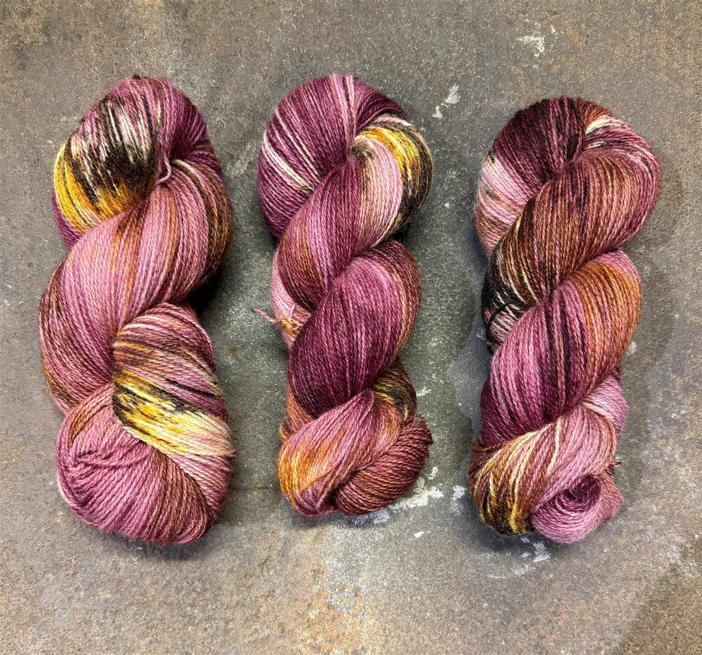 Fortuna Fjære Sokkegarn er håndfarget i Fortunas mikrofargeri i butikken på Løkken Verk.