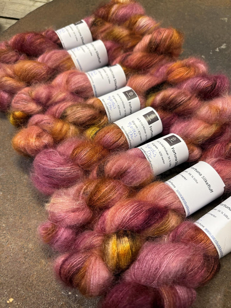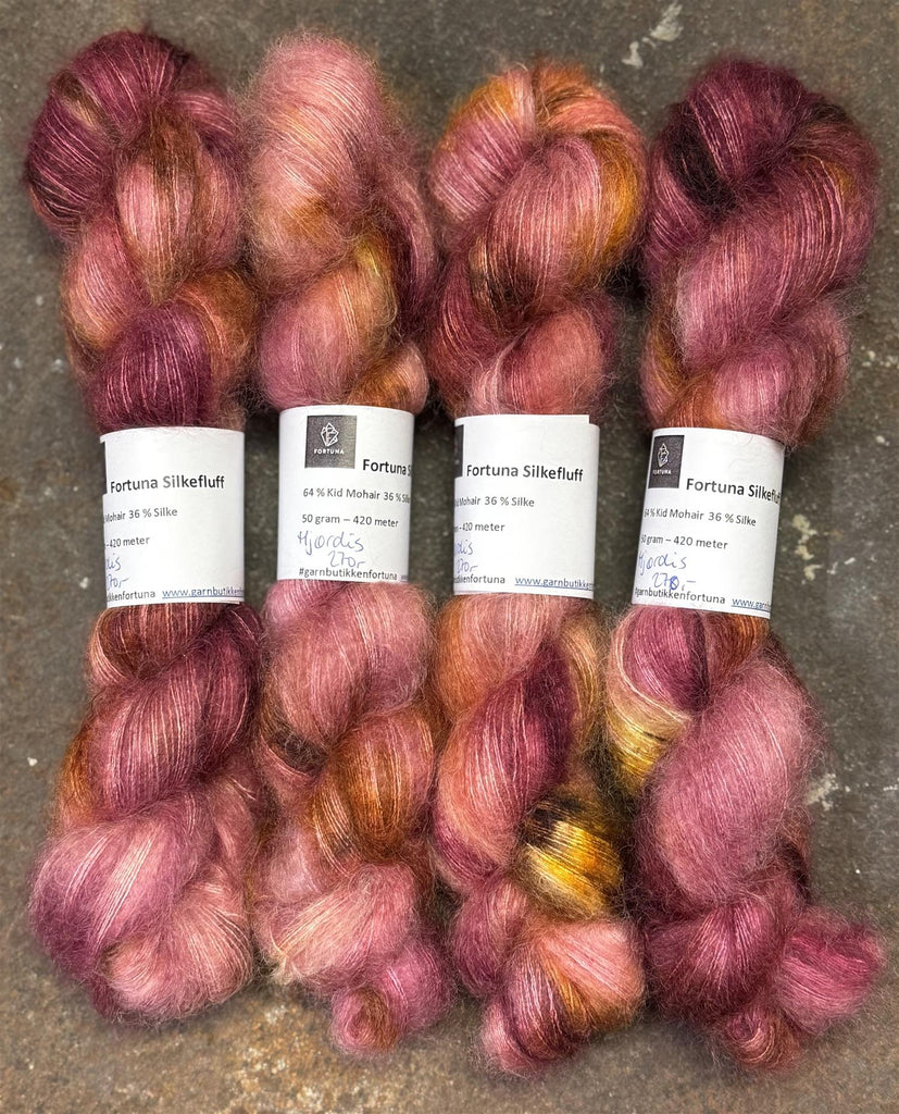 Lekkert garn i mohair og silkeblanding, 64 % Kid Mohair og 36 % Silke.