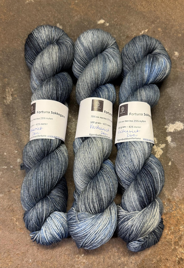 Håndfarget garn av 75% SW Merino og 25% Nylon