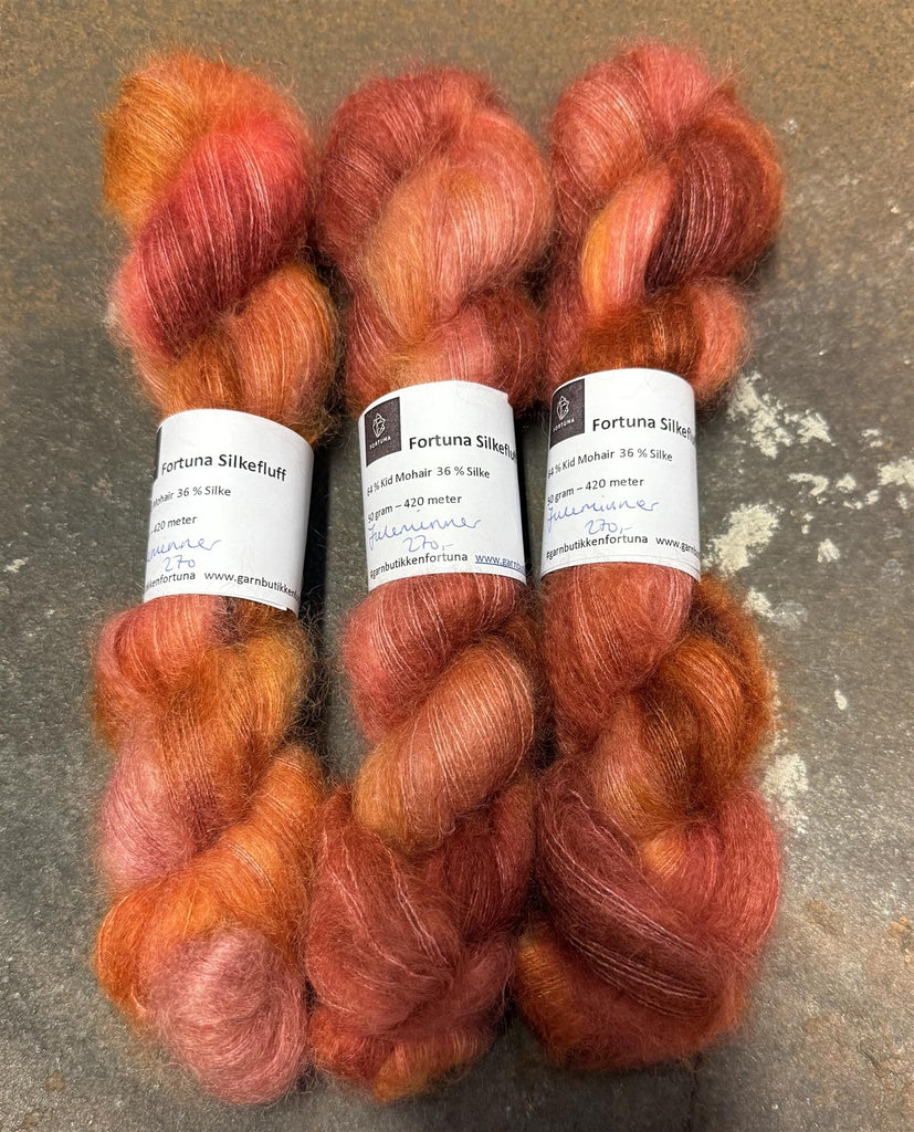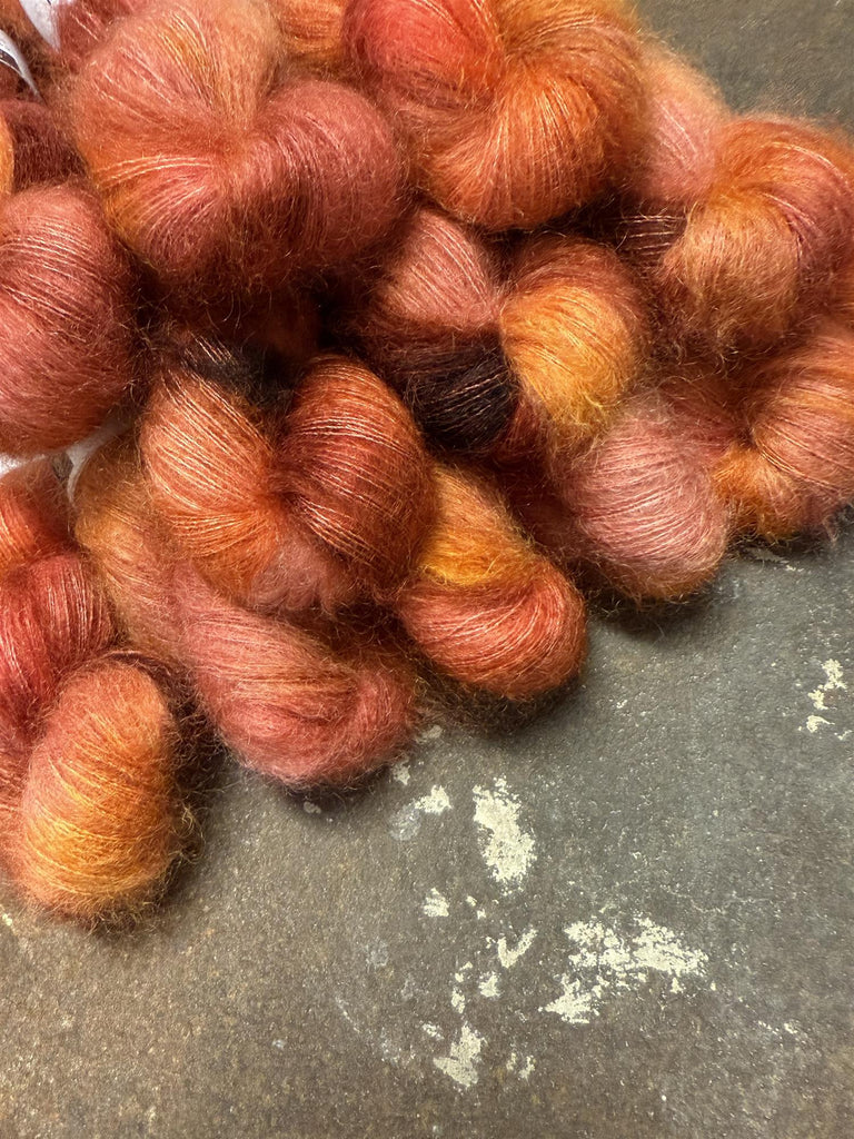 Lekkert garn i mohair og silkeblanding, 64 % Kid Mohair og 36 % Silke.