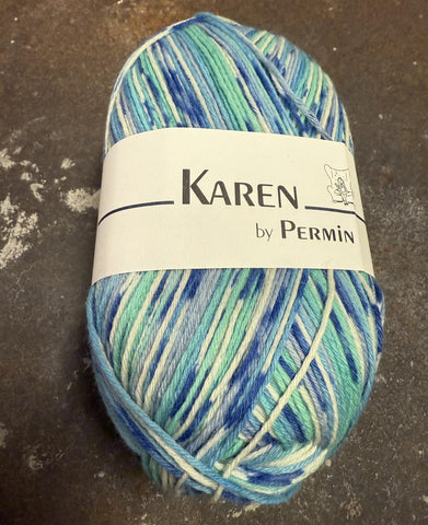 Med Karen kan du strikke tynne strømper til vinteren. Fra skigåing til aking til snøballkrig vil dette 6-tråds garnet holde føttene gode og varme. Ett nøste holder til et par strømper.