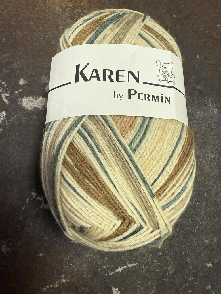 Med Karen kan du strikke tynne strømper til vinteren. Fra skigåing til aking til snøballkrig vil dette 6-tråds garnet holde føttene gode og varme. Ett nøste holder til et par strømper.