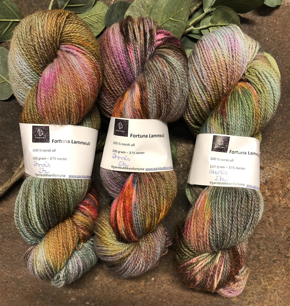 100 g = ca 375 m. Nm 7,5/2, 2 trådet, 100 % norsk ull.