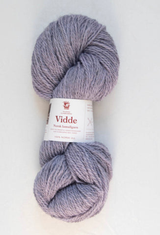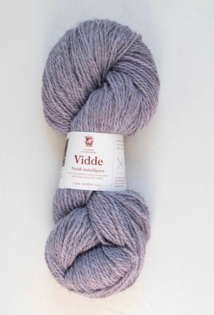 Vidde lamullgarn er spunnet i en unik blanding av hvit lamull og grå pelsull. Garnet har en lys melering og er farget i flere delikate farger i tillegg til naturgrå. Vidde er løst spunnet, men med god spenst og holder seg fint i ferdigstrikkede plagg.